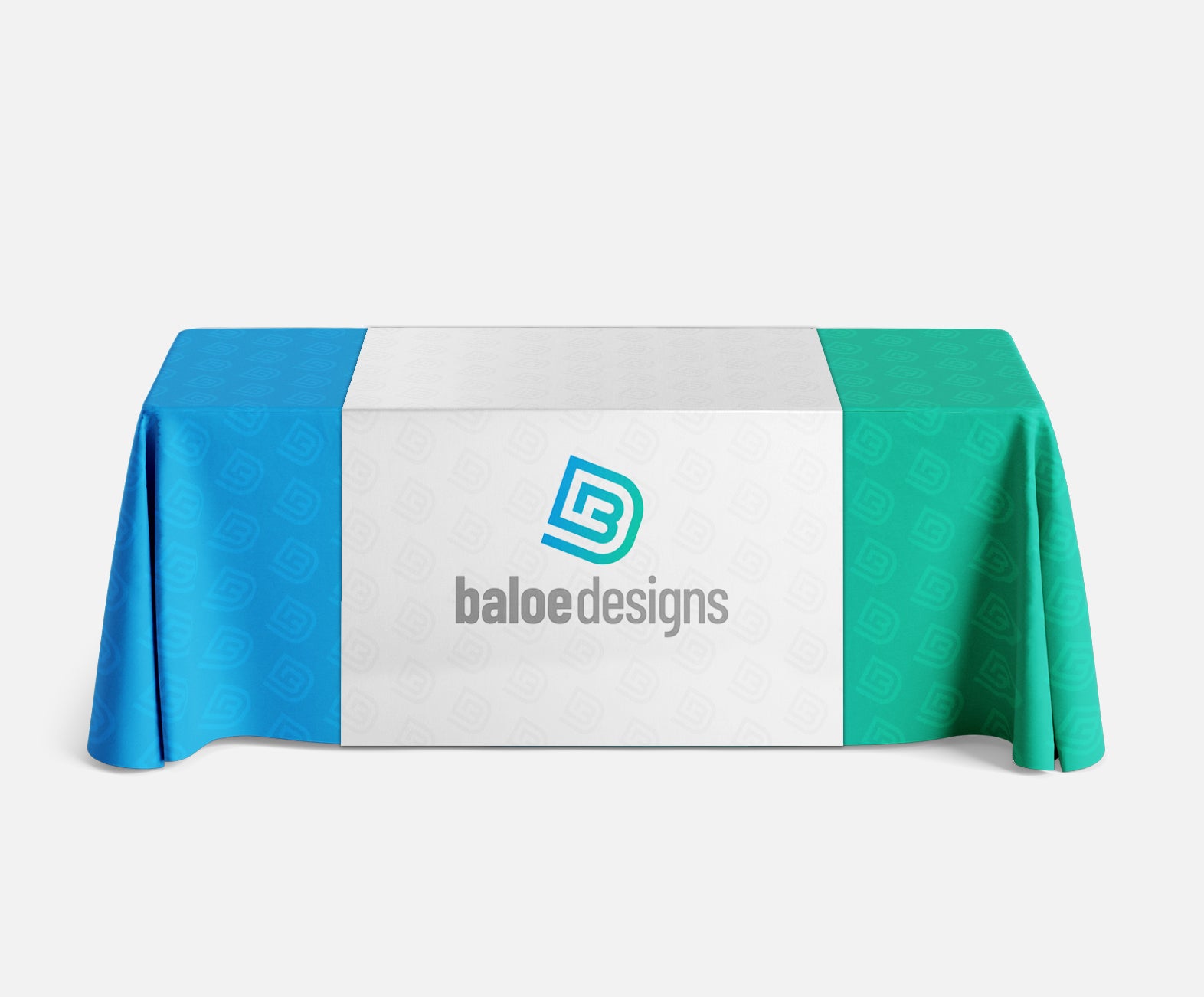 Elevate your display with our custom designed table throws! Whether you need a stretched table cover, table throw or runner, we’ve got you covered.